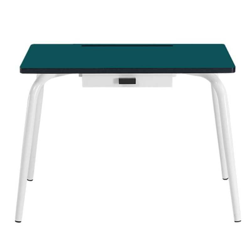 • Effen duivenblauwe tafel met witte poten