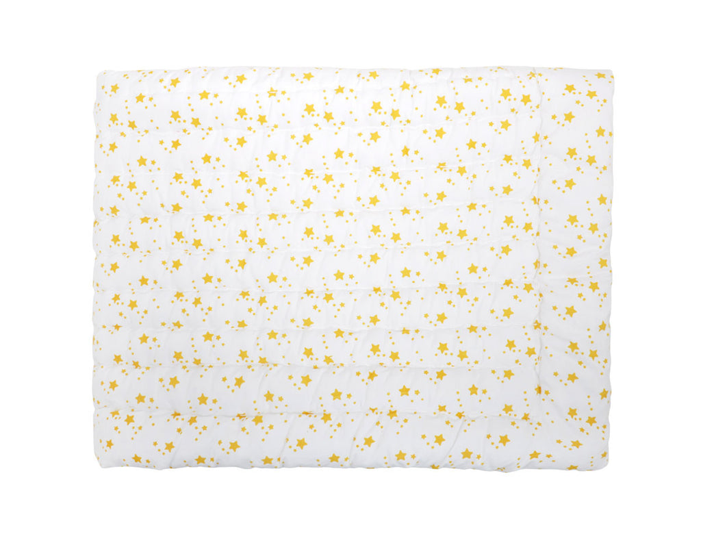 Prachtig wit deken van het Franse label "Rose in April" met gele sterren.
