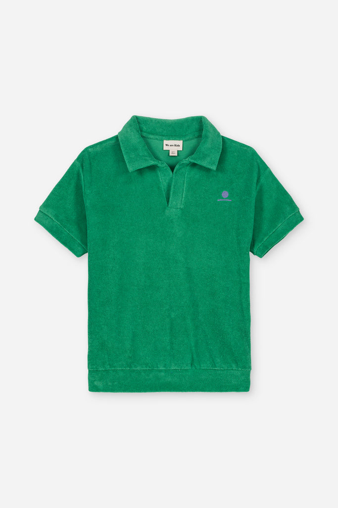 Deze Polo Leonard Terry Real Green uit de Postcard collectie van We Are Kids is de perfecte keuze voor jongens en meisjes die op zoek zijn naar een stijlvolle, comfortabele polo voor de zomer.