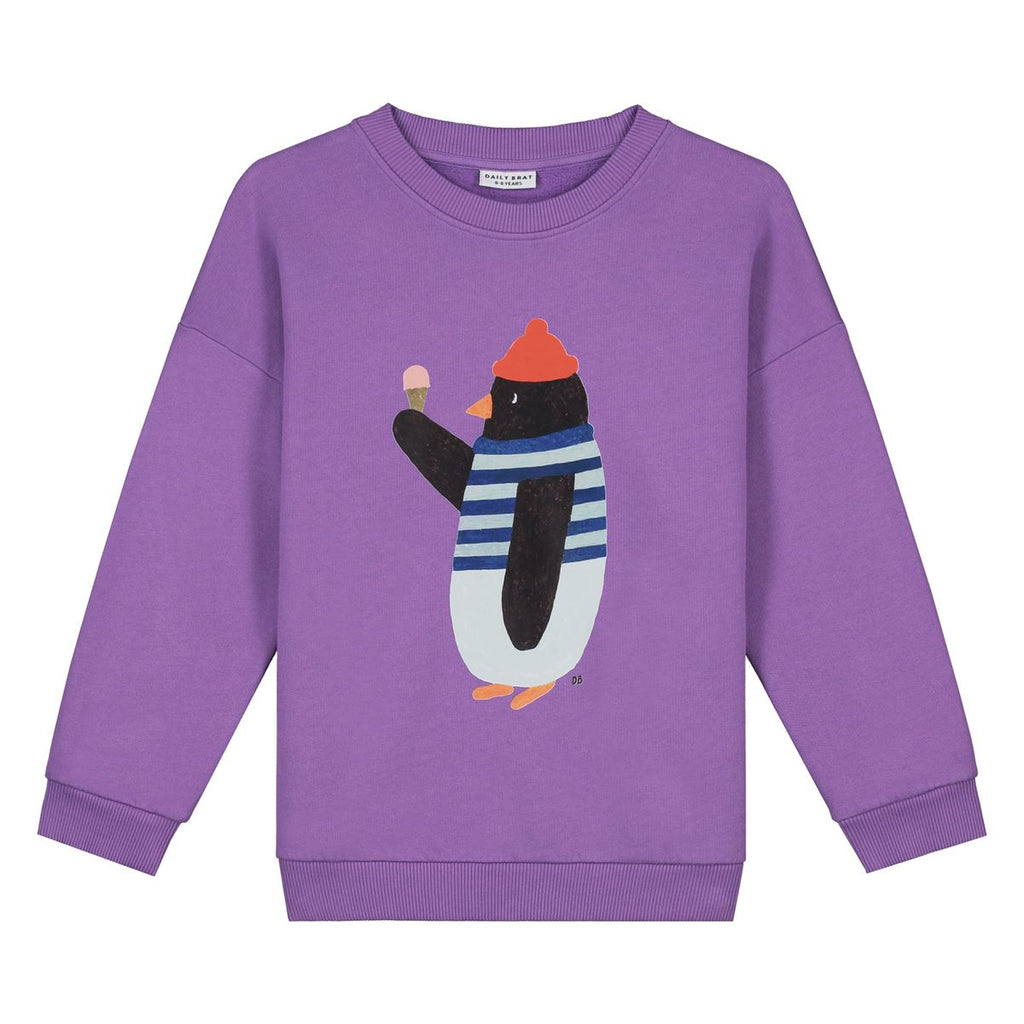Paarse sweater voor jongens en meisjes van Daily Brat met pinguïnprint