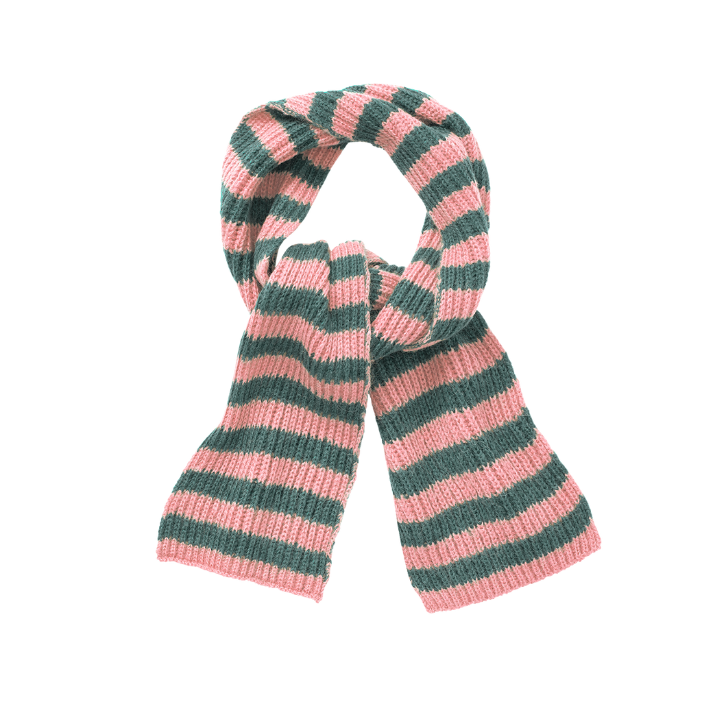 Gebreide sjaal met strepen in perzikroze en donkergroen uit de A Cosmic Romance collectie van Sproet & Sprout