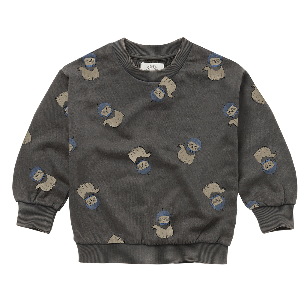 Sproet & Sprout - Sweatshirt Space Cat Print | Washed Black