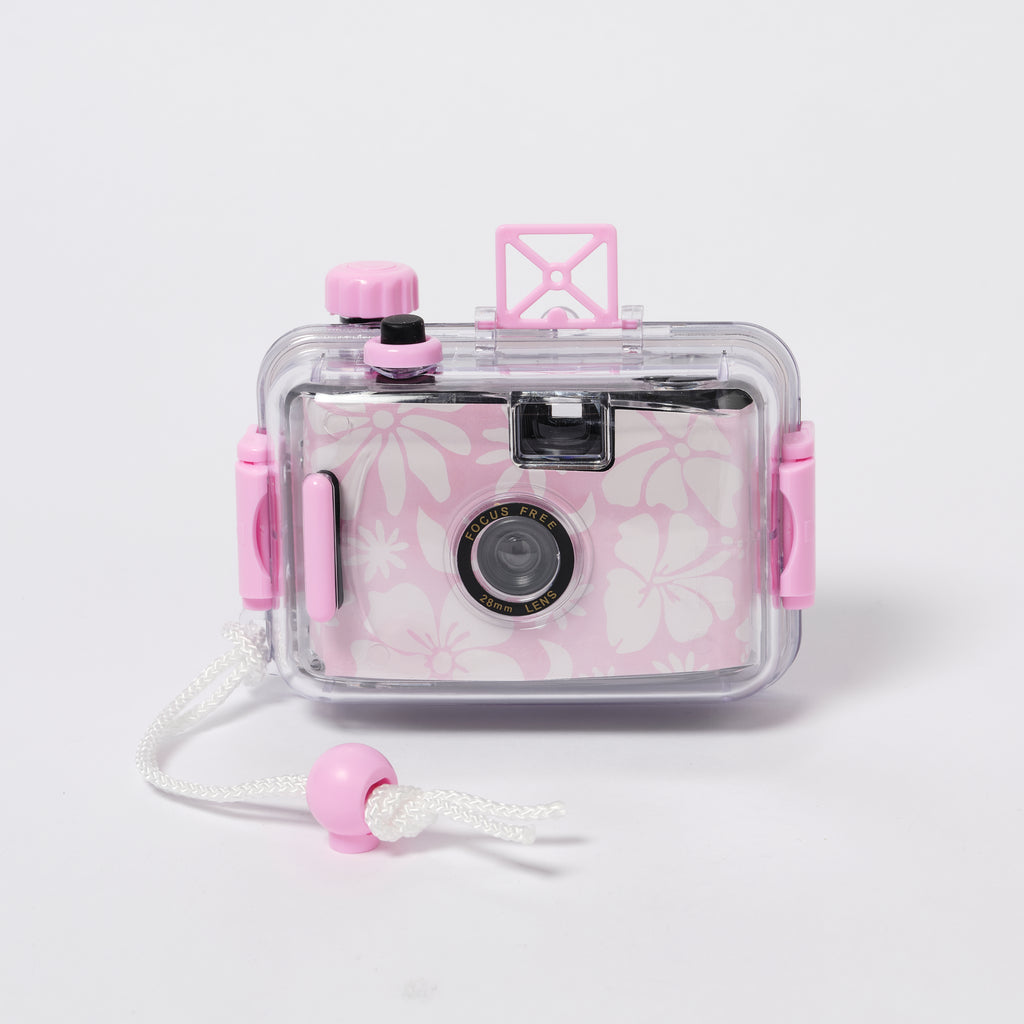 Deze onderwatercamera van Sunnylife in de kleurrijke Pink Floral print is perfect voor kleine fotografen. Hij is waterdicht, stevig en eenvoudig in gebruik dankzij de focusvrije lens en het manuele draaisysteem.