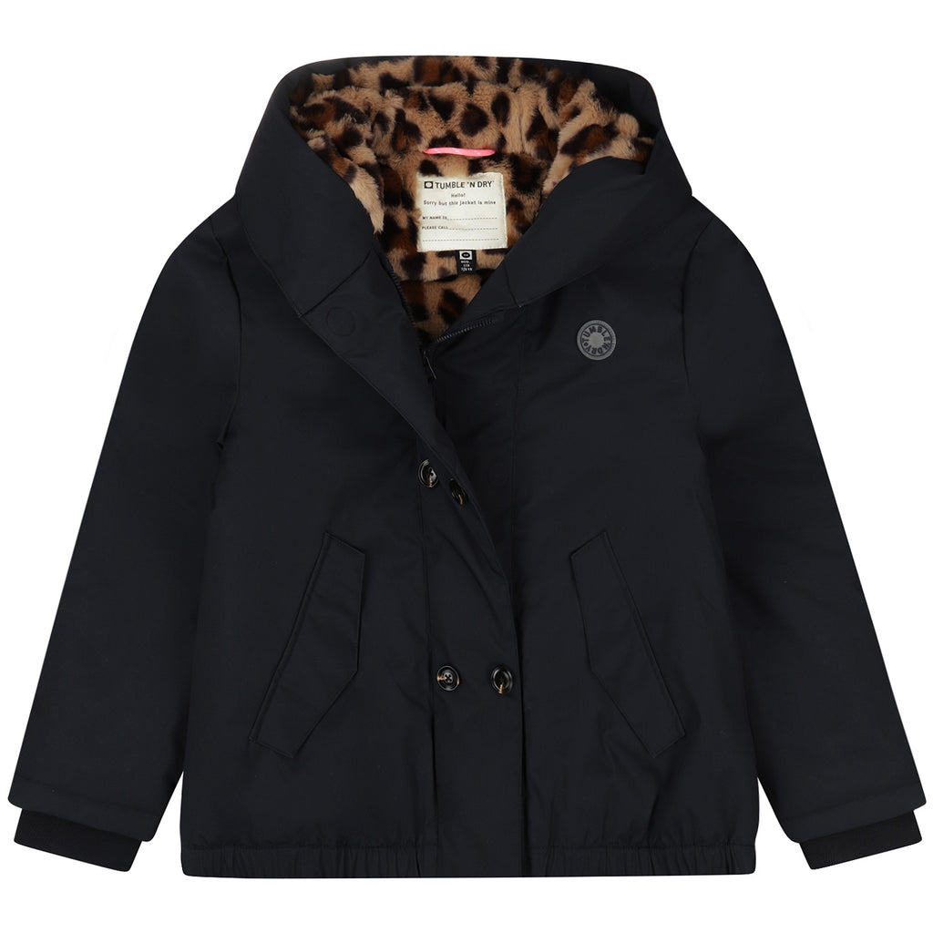 Een donkerblauwe meisjes winterjas met leopard voering van Tumble ’n Dry