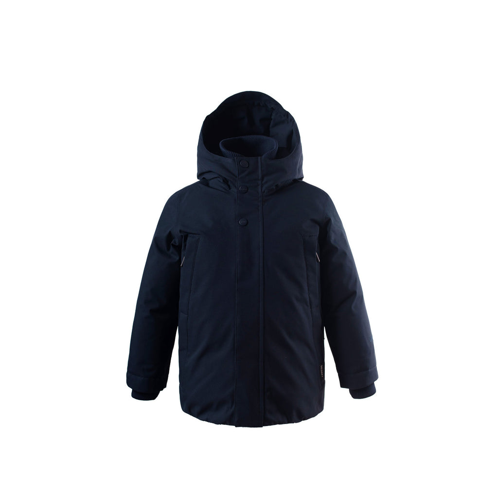 Deze praktische winterjas in de tijdloze kleur Sky Captain Blue is ontworpen voor kinderen die houden van buiten spelen, ook wanneer het weer niet meezit.