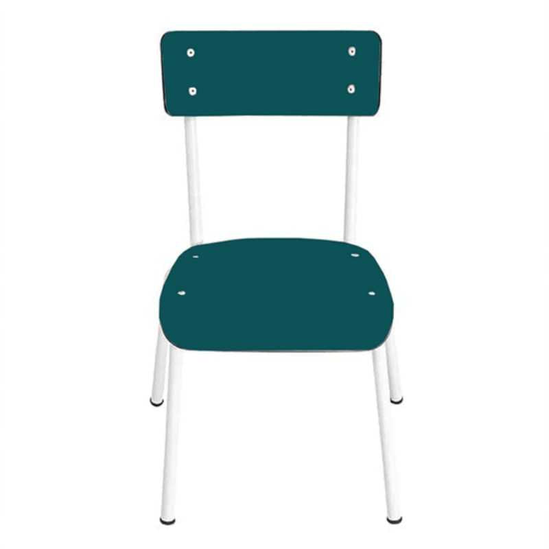Deze stoel Colette 6-12 jaar heeft een 'duivenblauw' effen kleur met witte poten en zorgt voor een retro designlook in de kamer van uw kind.