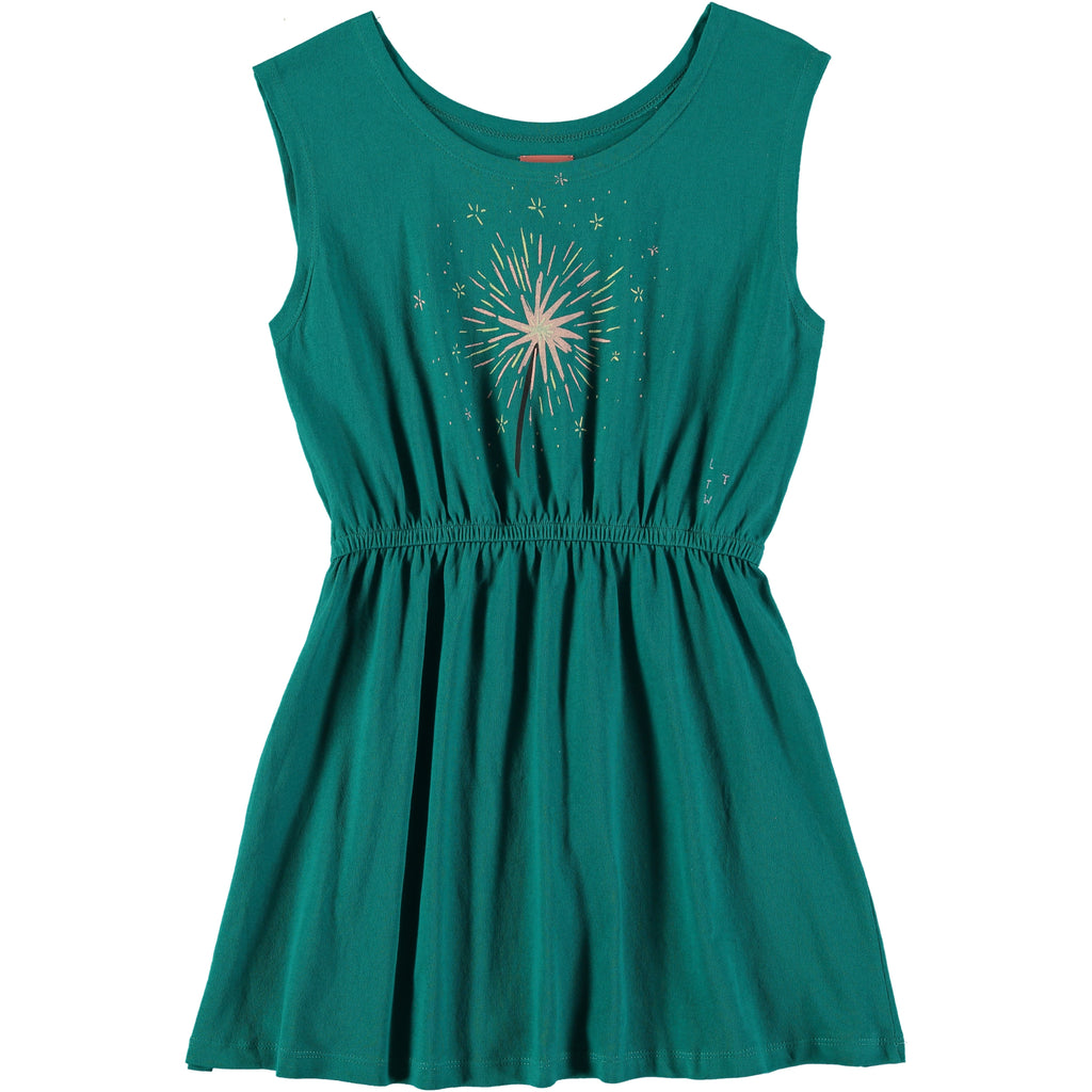 In dit donkergroen kleedje zonder mouwen zal jouw dochter sowieso stralen.